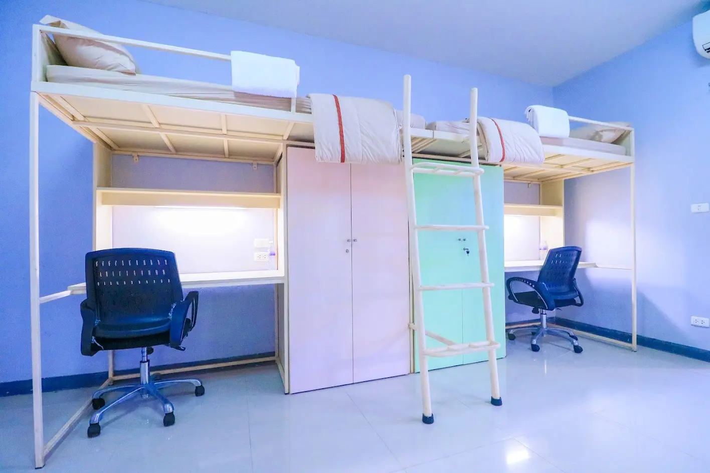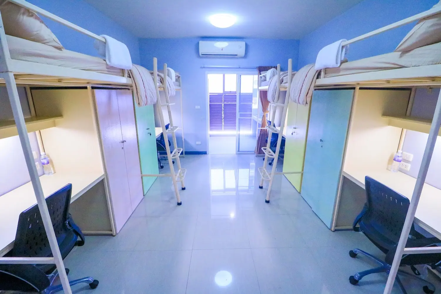 The accommodation consists of a 5-storey building divided into 56 male dormitories and 56 female dormitories. The dormitory can accommodate a total of 448 students. Students can stay in each room for 4 people. And everyone will have the opportunity to learn academically, aesthetics, society, culture, along with living with those who are under the supervision of a school that warms all students like family and friends. As they grow up, they can help themselves, help others and live happily in society in the future.