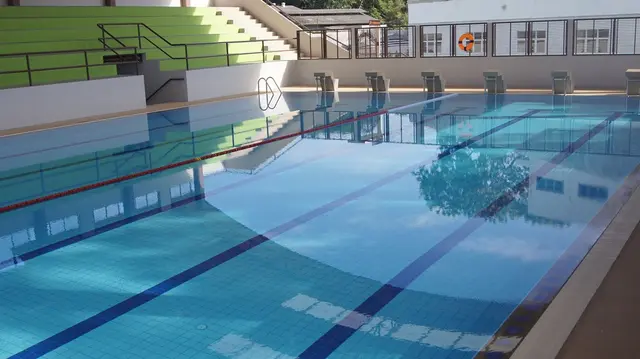 It is a modern sports center with one and a half floors. The first floor is a stadium and basketball court, and the mezzanine is a fitness center for students, teachers and staff.